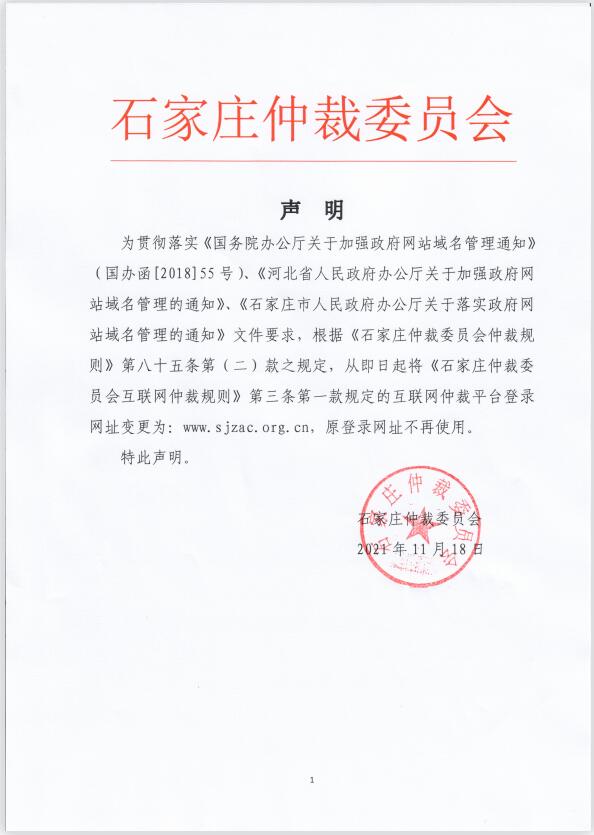 版权所有 石家庄仲裁委员会 网站标识码:13010202001539 冀ICP备10005293号-1 冀公网安备 13010202001539号